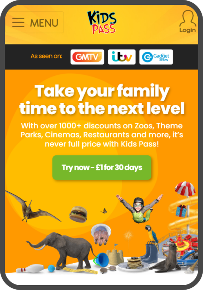Kids Pass is the top family discount app in the UK, offering experiences for all ages and demographics. Our deals span across multiple territories offering exclusive discounts including theme parks, zoos and safari parks, cinemas, restaurants, staycations, bowling and more. With over 1.2 million members, users save an average of £400 per year.