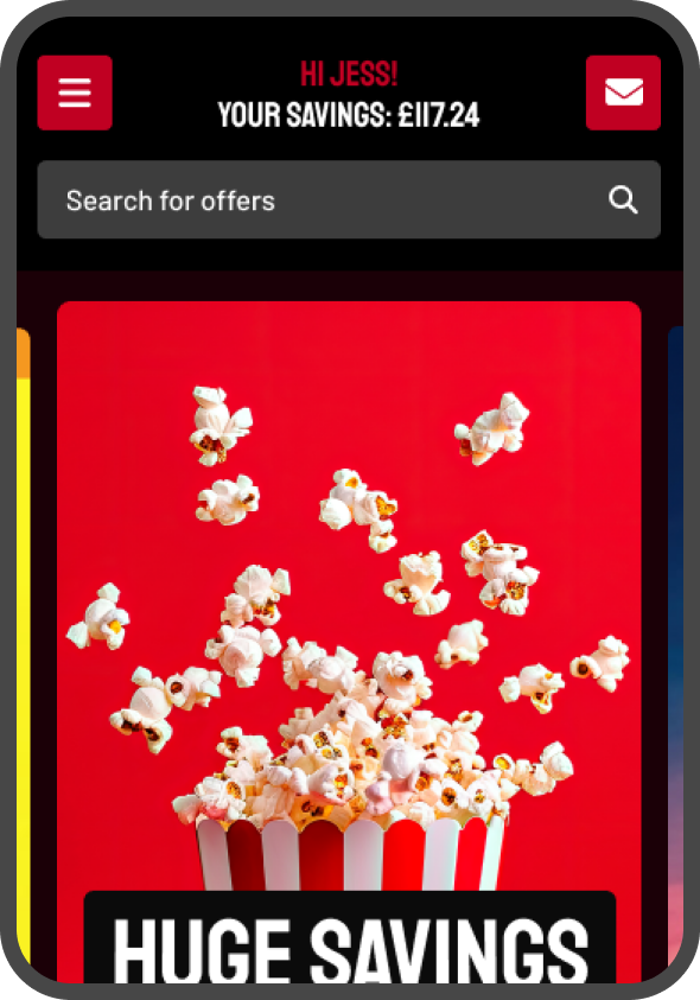 Our bespoke "Big Night Out" package offers cinema, dining, and days out deals. With coverage across over 220 cinema locations, including the ROI market, we ensure strong nationwide reach. Plus, we provide extra savings on popcorn and drink bundles. Popcorn Pass is an excellent option for brands looking to acquire or retain customers during peak seasonal periods.